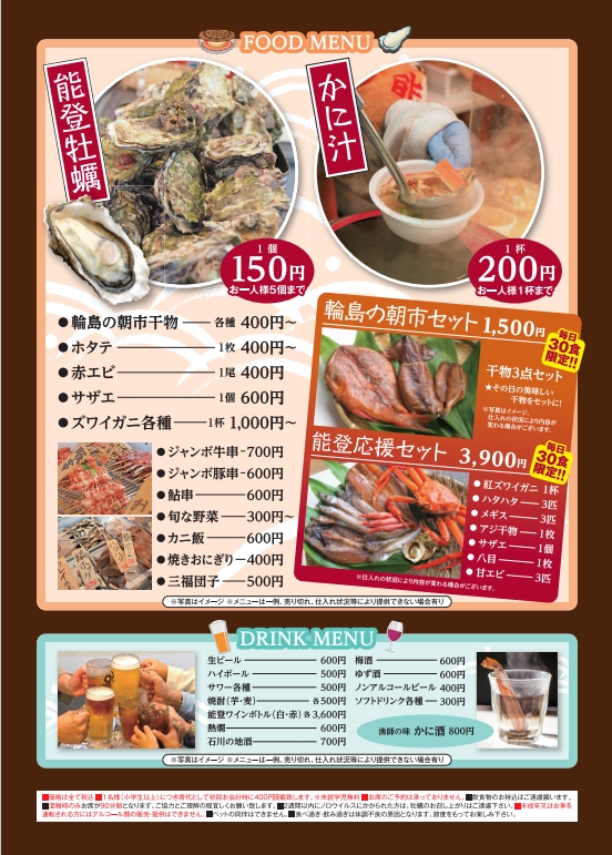 11/29〜12/21【出張】能登炉ばた開催 公開済み: 2025年11月14日更新: 2025年11月14日作成者: adminカテゴリー: お知らせ, ショップニュース 全国の旨いがてんこ盛り!食べて能登を応援!! 2025年11月29日(土)〜12月21日(日) アピタ大和郡山店 正面入口特設会場